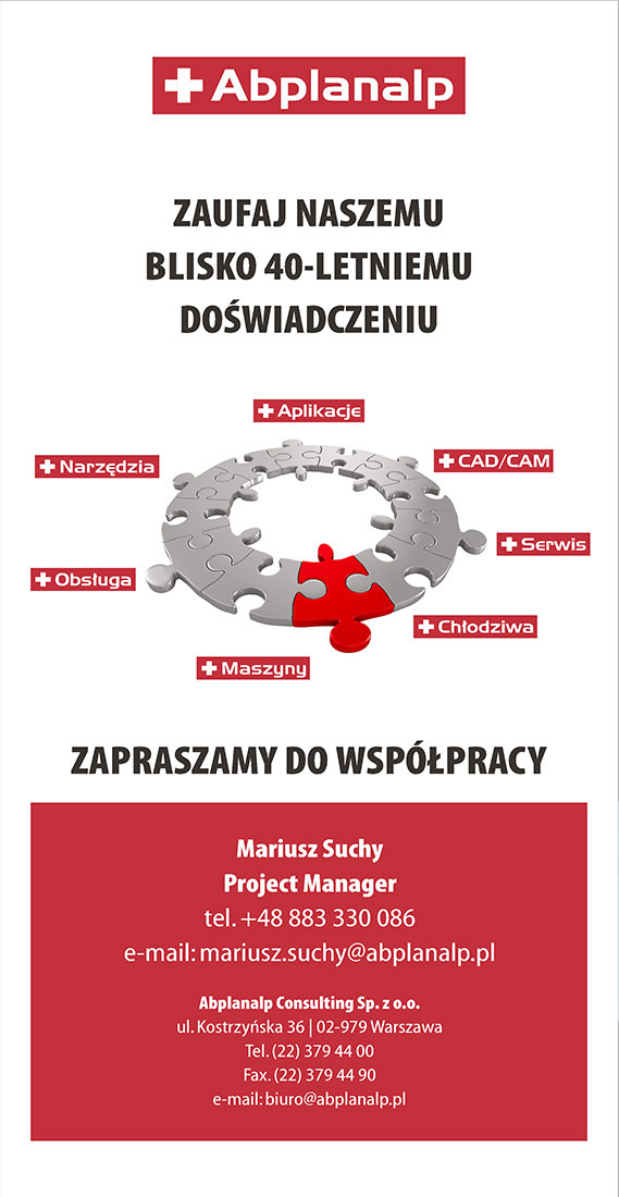 Zpracování, kombinací materiálů, CNCAddresa: ul. Kostrzyńska 36, 02-979 WarsawTelefon: (22) 379-44-00;Tel. (22) 858-94-78, Fax. (22) 379-44-90e-mail: biuro@abplanalp.plWWW: www.abplanalp.pl
