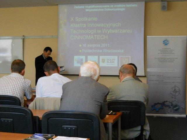 16 sierpnia 2011 roku w budynku Politechniki Wrocławskiej odbyło się 10-te już spotkanie informacyjne członków Klastra w ramach projektu „Promocja i rozwój Klastra Innowacyjnych technologii w Wytwarzaniu CINNOMATECH”.
